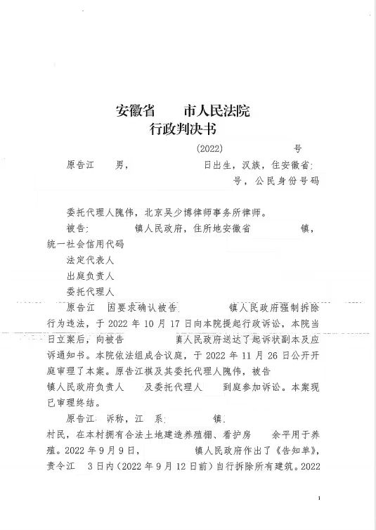 本案代理律師 北京吳少博律師事務所張弛 案情摘要: 宅基地強制騰退 當事人遭受言語威脅失
